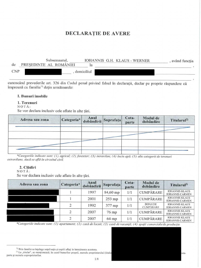 Potrivit declaraţiei de avere, klaus iohannis deţine în continuare, alături de soţie, cinci imobile în sibiu, în condiţiile în care imobilul pierdut în instanţă a fost acest lucru se explică prin faptul că iohannis a beneficiat de un an întreg de venituri majorate prin og emisă de guvernul ponta în 2015 cu privire la.